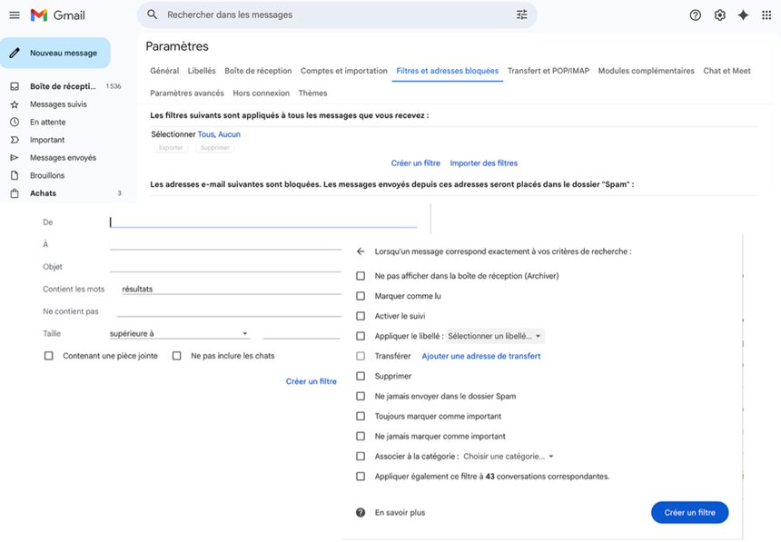 Les filtres sont souvent sous-estimés, alors qu’ils sont de véritables alliés. Ils permettent par exemple de classer automatiquement les mails des fournisseurs dans un dossier dédié, ou de repérer rapidement les messages prioritaires. Une fois mis en place, ils travaillent tout seuls et allègent considérablement la charge mentale liée à la gestion des mails.