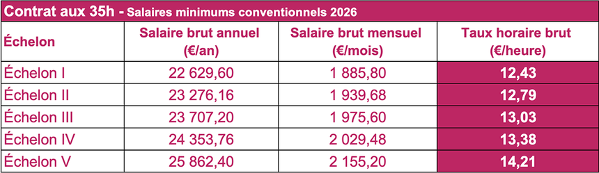 Salaire brut minimum conventionnel et taux horaire du personnel auxiliaire travaillant 35 heures/semaine :
