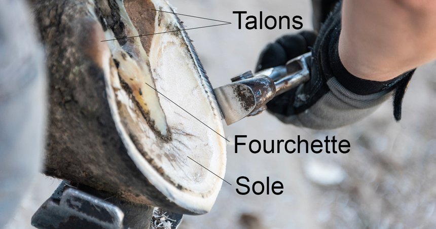 Sur un pied nu, la fourchette peut pleinement jouer son rôle d’absorption des chocs. De plus, lorsqu’il n’est pas contraint par un fer métallique, le pied peut se déformer lors de l’appui : les talons s’écartent et l’ensemble de la surface solaire entre davantage en contact avec le sol.
